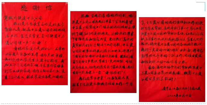 十三建公司結(jié)合每一名貧困戶(hù)的實(shí)際情況,按照就近安排的原則,把他們都安排在離家比較近的項(xiàng)目,既方便上班,又能照顧家里。為了讓貧困人員更好地適應(yīng)崗位需求,項(xiàng)目部對(duì)他們進(jìn)行了崗前培訓(xùn)和安全教育,普及文明施工知識(shí),開(kāi)展相關(guān)技能培訓(xùn)。如今過(guò)去一個(gè)月了,所有貧困就業(yè)人員都及時(shí)拿到了第一個(gè)月工資,為了表達(dá)他們的心意,聯(lián)名給十三建公司寫(xiě)了一封“感謝信”。