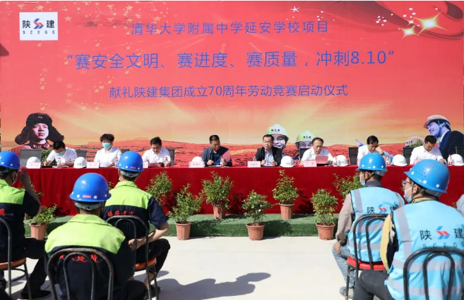5月28日,陜建十三建公司清華大學(xué)附屬中學(xué)延安學(xué)校項(xiàng)目舉行“賽安全文明、賽進(jìn)度、賽質(zhì)量,沖刺8.10”獻(xiàn)禮陜建集團(tuán)成立70周年勞動(dòng)競賽啟動(dòng)儀式。