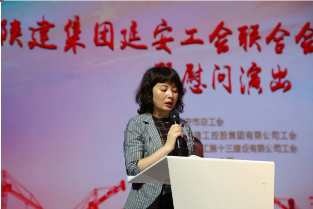 陜建集團(tuán)女工委主任、機關(guān)工會主席劉愛英同志宣讀陜建集團(tuán)工會成立延安工作站的文件。