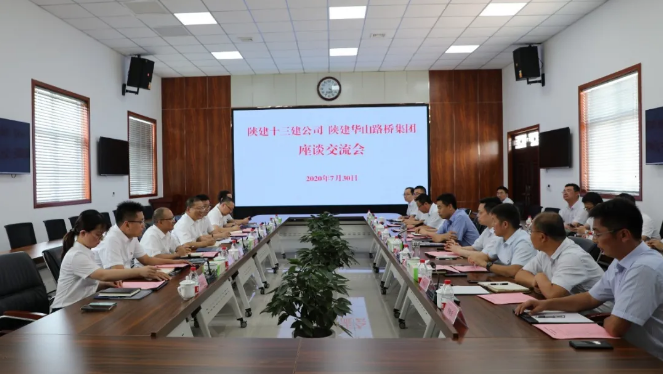 華山路橋集團(tuán)副總經(jīng)理方曉明、張華,總會(huì)計(jì)師李軍,陜建十三建公司副總經(jīng)理鐘卓寶、總工程師王弘起、總會(huì)計(jì)師王磊,副總經(jīng)理景益濤及雙方相關(guān)部室負(fù)責(zé)人等參加座談。