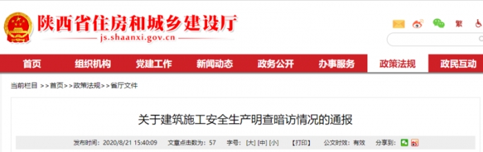 陜西省住建廳關于建筑施工安全生產明查暗訪情況的通報
