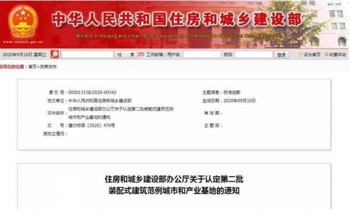 9月15日,住建部認(rèn)定西安市等18個(gè)城市為第二批裝配式建筑范例城市,天津市現(xiàn)代建筑產(chǎn)業(yè)園區(qū)等12個(gè)園區(qū)、北京建工集團(tuán)有限責(zé)任公司等121家企業(yè)為第二批裝配式建筑產(chǎn)業(yè)基地。
