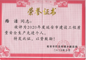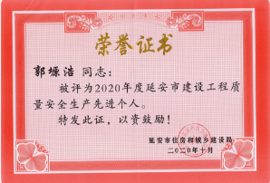 路潔、郭塬浩榮獲“延安市建設(shè)工程質(zhì)量安全生產(chǎn)先進(jìn)個(gè)人”榮譽(yù)稱(chēng)號(hào)。