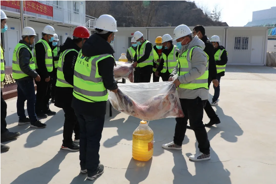 公司慰問項目春節(jié)留崗、依然奮戰(zhàn)在建設(shè)一線的工人們,給他們送去了米、面、油、羊肉等慰問品,為大家送去新春佳節(jié)的美好祝福和深切問候,并囑咐大家,一是要切實做好節(jié)日期間疫情防控工作,在歡度春節(jié)之余,要時刻保持警醒,盡量減少出行和聚集;二是要抓好安全生產(chǎn)工作,加強春節(jié)期間施工作業(yè)現(xiàn)場的安全防護(hù)工作,確保施工安全;三是要加強對就地過年工人們的關(guān)心和關(guān)愛,即使春節(jié)不回家,也要讓工人們感受到大家庭的溫暖,讓大家度過一個安心、祥和、歡樂的春節(jié)。