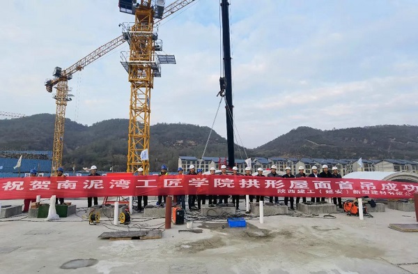 10月23日,由陜建十三建集團(tuán)承建的延安南泥灣勞模工匠學(xué)院項目首個預(yù)制拱型屋面順利完成吊裝。