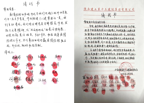 為了積極應對嚴峻的疫情防控形勢,在陜建十三建集團黨委的號召下,全體黨員干部、團員青年、90后、00后紛紛遞交請戰(zhàn)書,請愿赴一線服務疫情防控工作,助力延安市打贏疫情防控阻擊戰(zhàn)、殲滅戰(zhàn)。