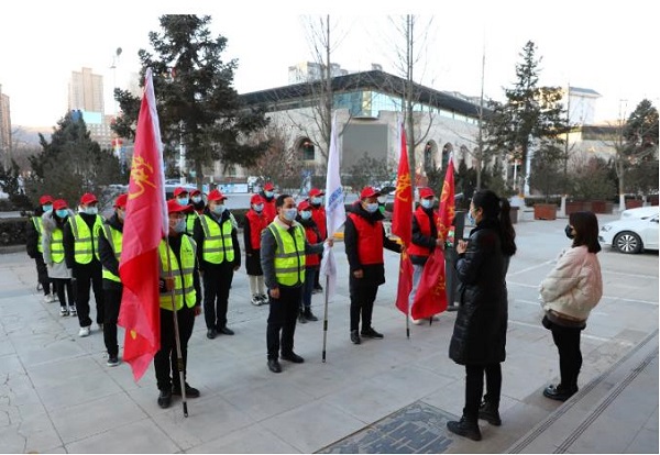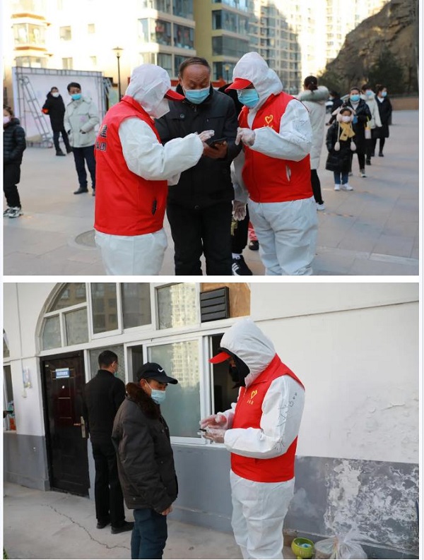 12月27日,陜建十三建集團黨委成立黨員先鋒隊和青年突擊隊組成的志愿服務隊后,在零下20度的嚴寒天氣下,經(jīng)過簡單的出征儀式,集團黨員干部、志愿者們前往玉佛苑社區(qū)協(xié)助工作人員和醫(yī)護人員開展志愿服務活動。在確保自身健康、做好安全防護的前提下,引導居民排隊、掃碼、有序進行核酸檢測,安全高效開展疫情防控志愿服務工作。