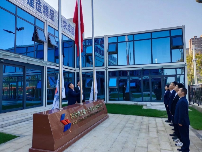 伴隨著第一縷晨光,鮮艷的五星紅旗冉冉升起,雄壯的《義勇軍進行曲》,既唱出了中華兒女萬眾一心、奮勇前進、永不屈服的決心,更唱出了陜建十三建集團全體員工扎根圣地延安,砥礪奮發(fā)前行的堅定信心!