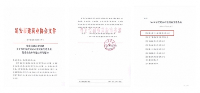 近日,延安市建筑業(yè)協(xié)會(huì)公布了2023年度延安市建筑業(yè)先進(jìn)企業(yè)、優(yōu)秀企業(yè)家評(píng)選結(jié)果,陜西建工第十三建設(shè)集團(tuán)有限公司被評(píng)為2023年度延安市建筑業(yè)先進(jìn)企業(yè);集團(tuán)總工程師、新型建材公司黨支部書記、董事長(zhǎng)王弘起被評(píng)為優(yōu)秀企業(yè)家。